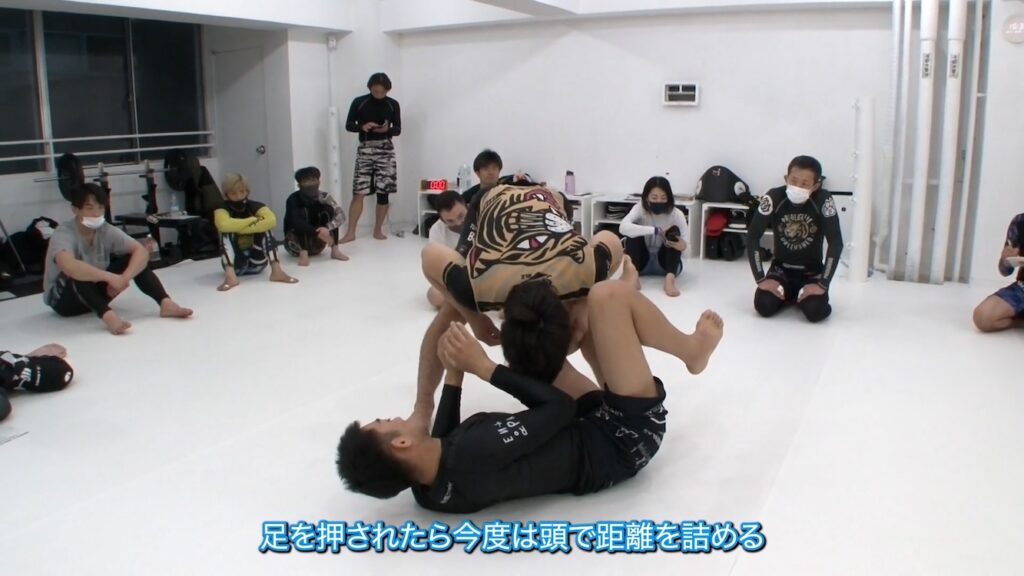 トップの相手はパスガードを狙うために前進して距離を詰めてきます。