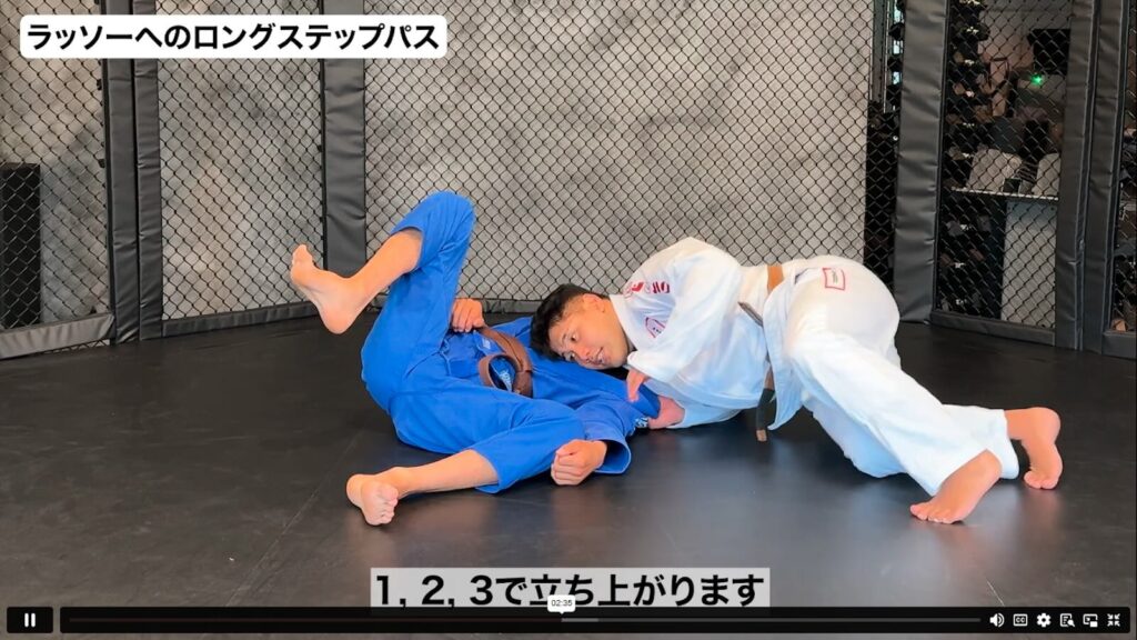 ロングステップは足を抜くところまでいけても、その後抑えきれないことが多かったです。このテクニックでは相手の上半身を殺すための頭の位置や足を抜いた後の足の使い方などが丁寧に説明されているのでパスしきれないということが減りました。
