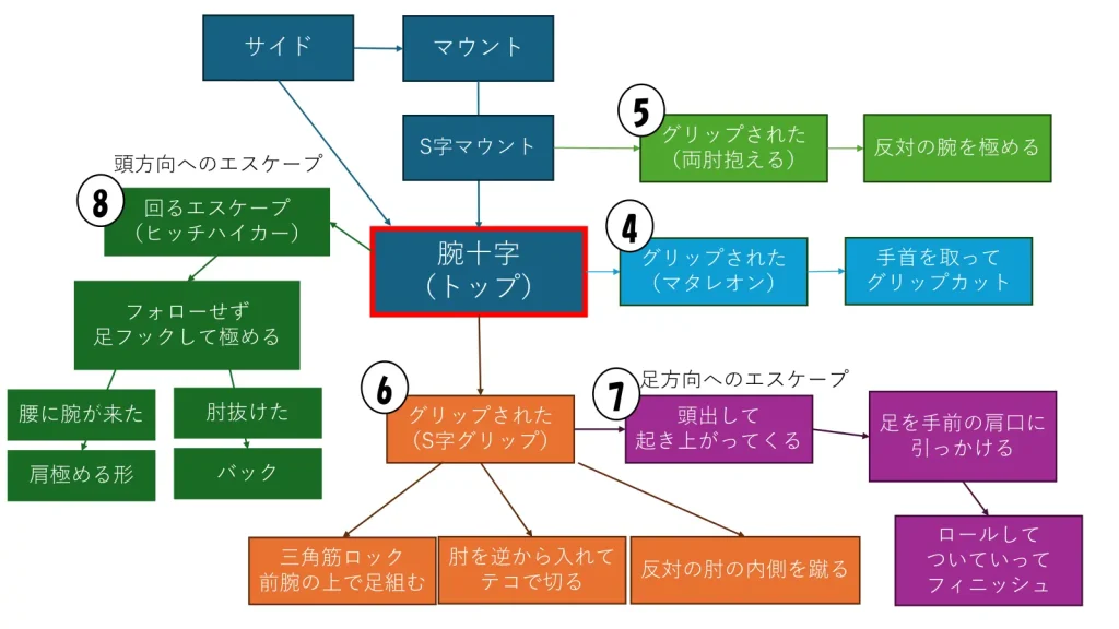 本教則のマウントからのハイマウントとS字マウントを作る流れや、サイドから腕をすくって逆サイドへ回る流れは相手にエスケープする隙ができないので逃げられなかったです