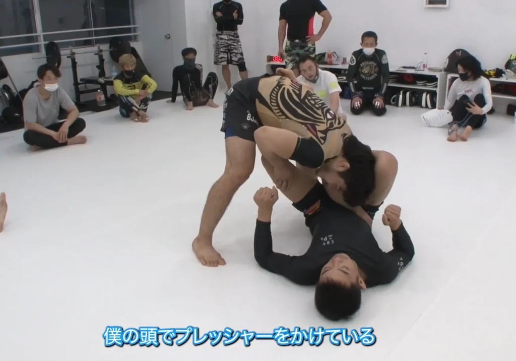 岩本選手は、直近の試合(Ocean BJJ)でもこのスタイルのパスを多用していました。