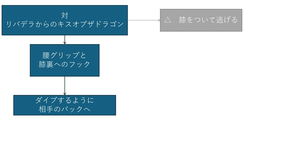 よくあるミス:キスオブザドラゴンに対して膝をついて距離を取って逃げようとする。スイープされたりベリンボロを狙われる