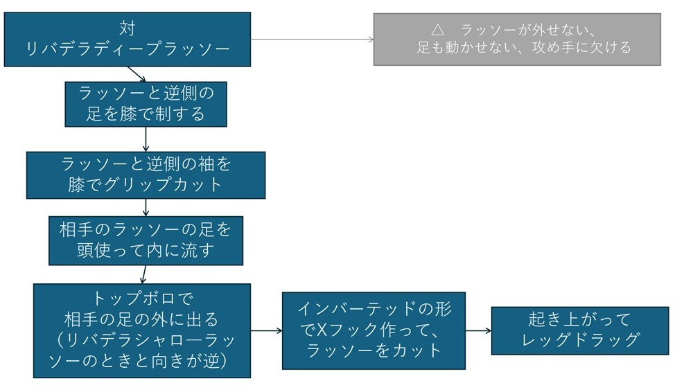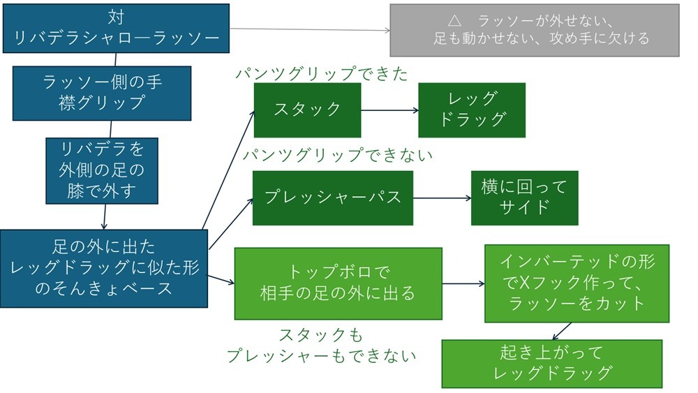 - シャローラッソー+リバースデラヒーバのパス(レッグドラッグ)