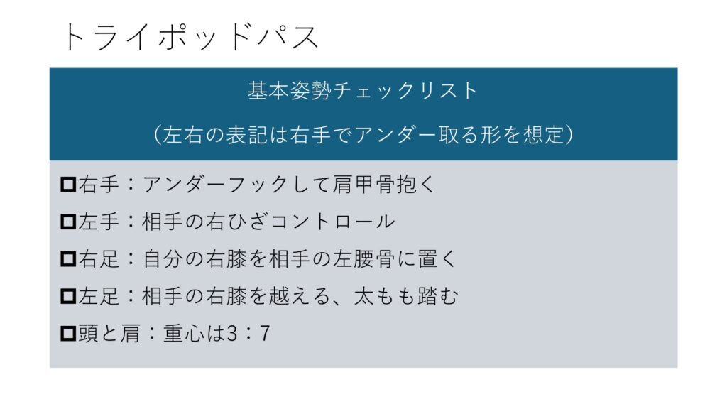 トライポッドパスに限らず全てのテクニックに共通する大事な哲学です。