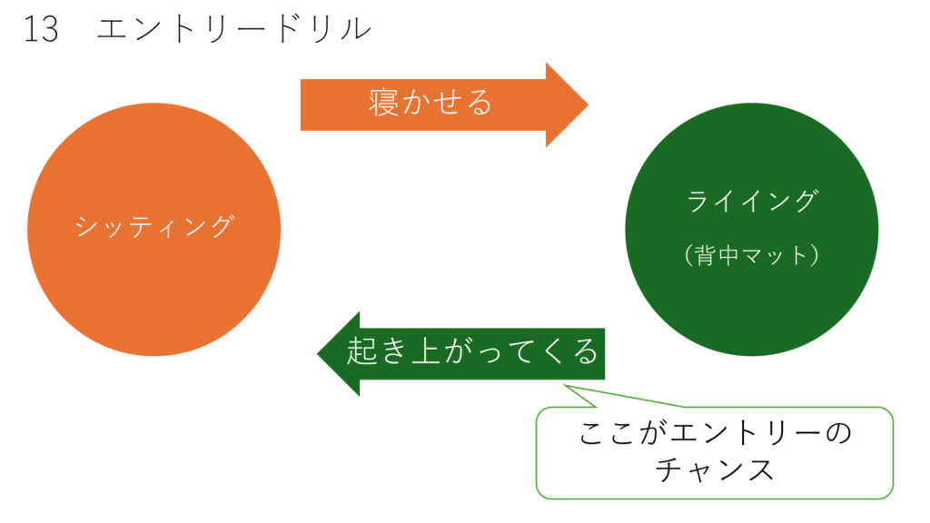 後半はエントリーです。最初のエントリードリルで狙うべき姿勢とタイミングを学び、その後相手の体勢ごとのエントリーを紹介しています。