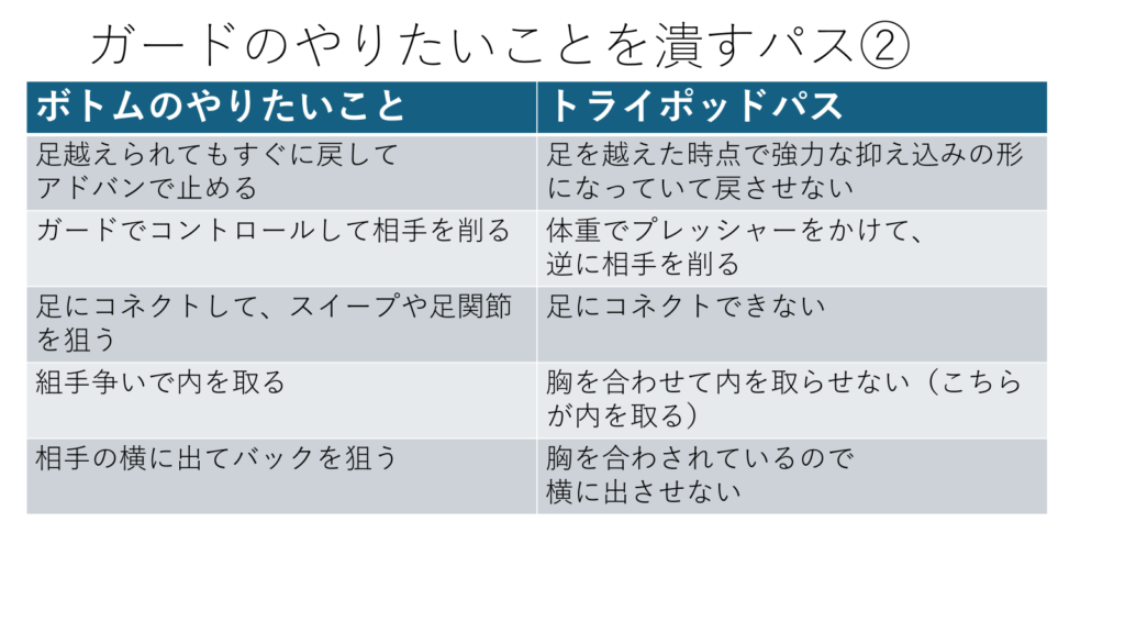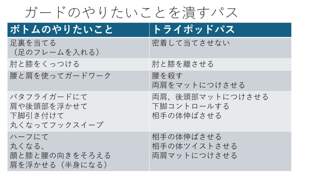 相手のガードを無効化するトライポッドパスのディティールが詰まっています。