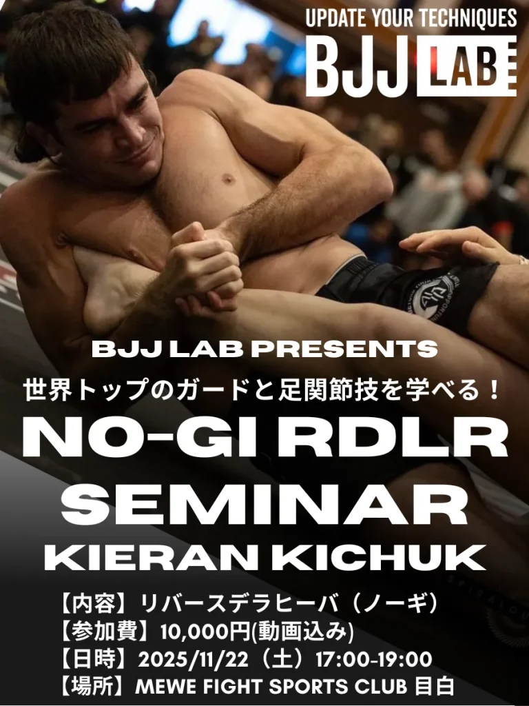 今回はKieran Kichuk選手のノーギリバースデラヒーバセミナーの情報をまとめました。